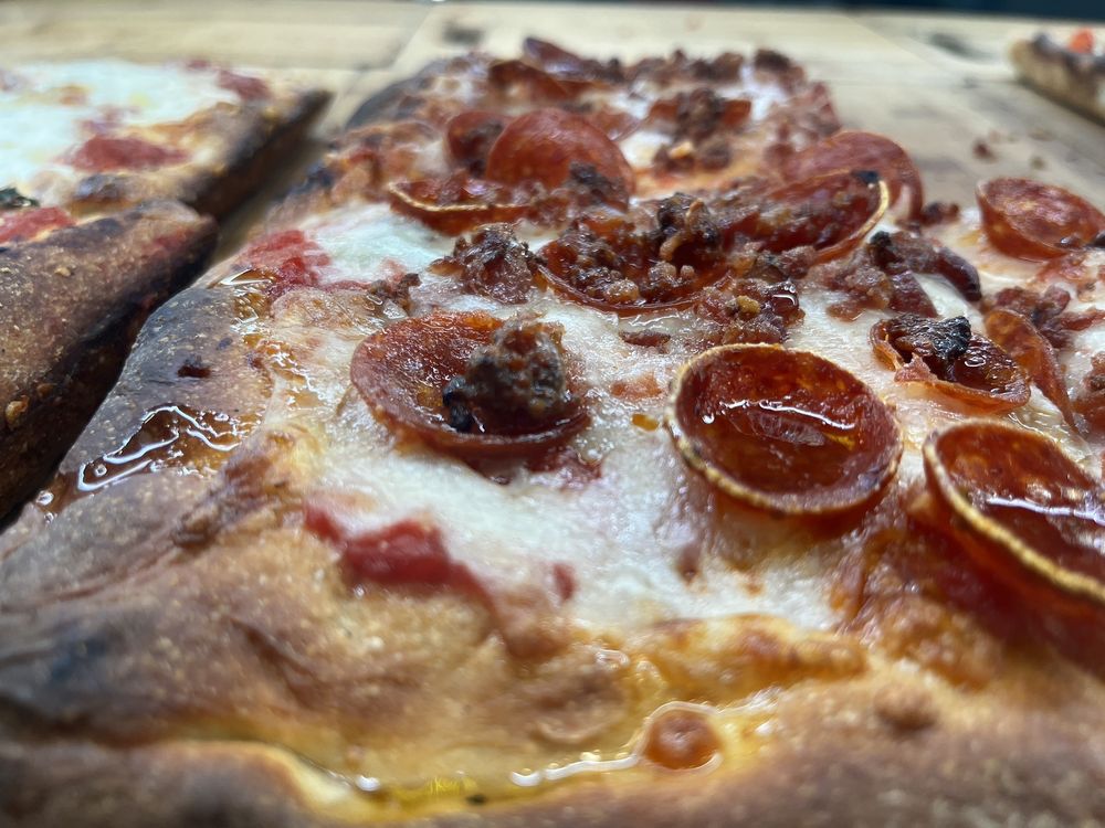 Sicilian Pizza with Pepperoni, Bacon and Hot Honey