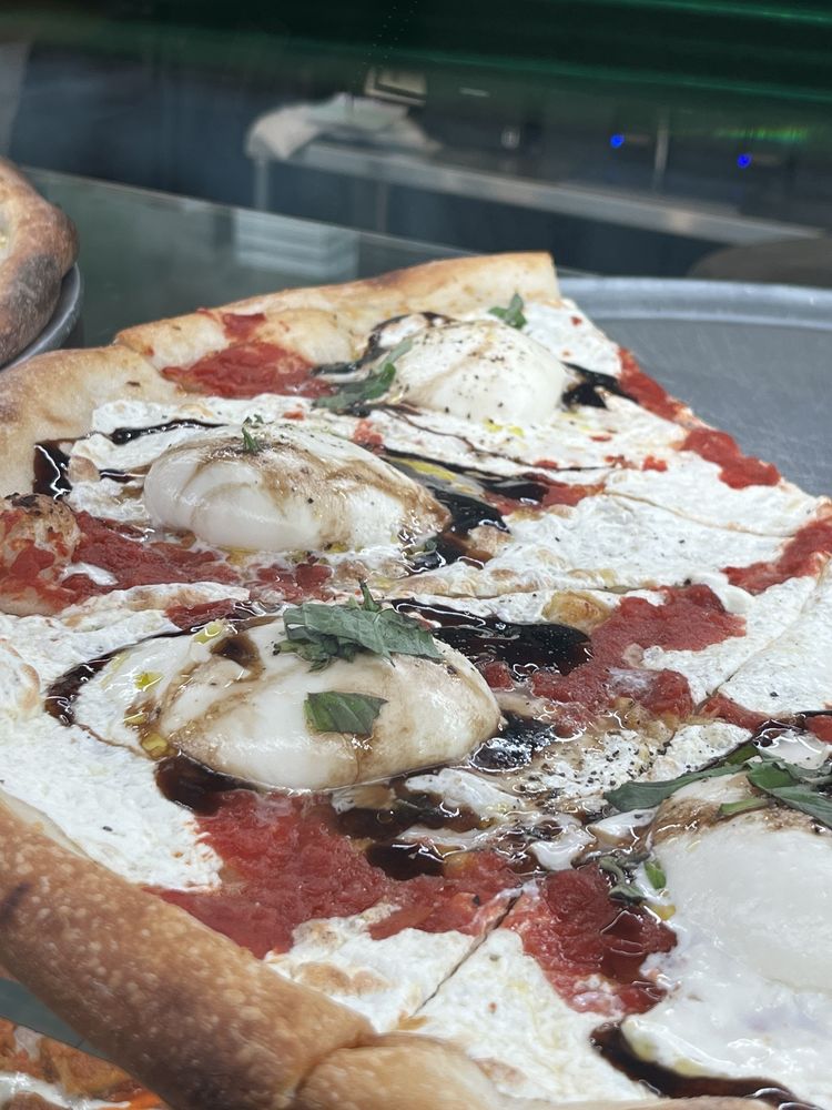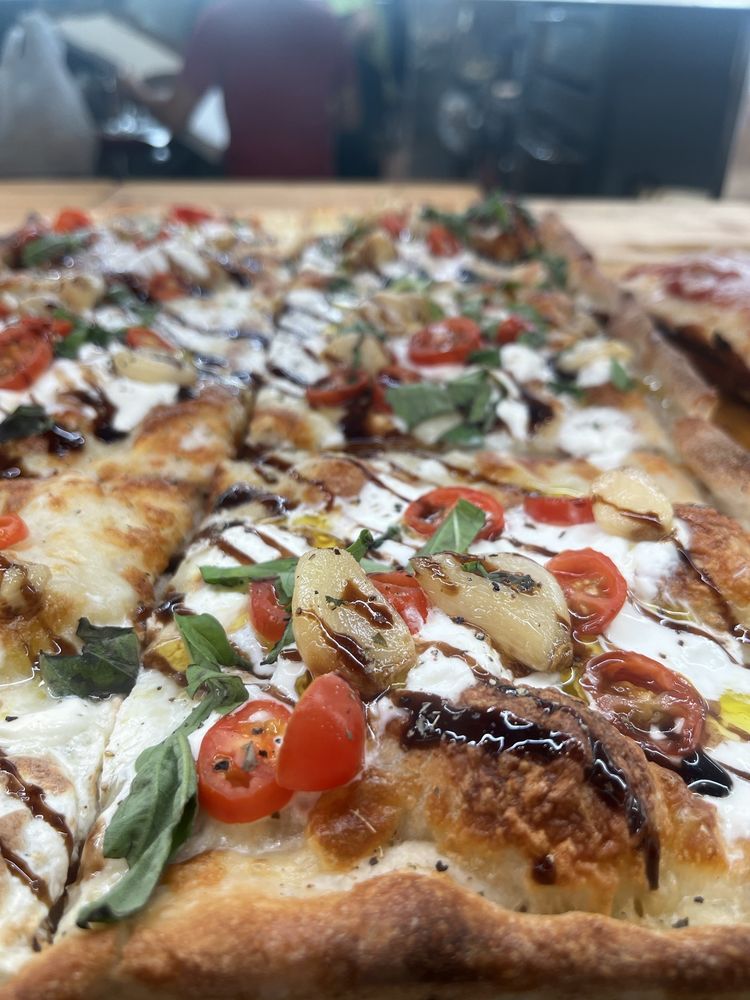 Square Pizza w/ fresh bruschetta, burrata, and pesto